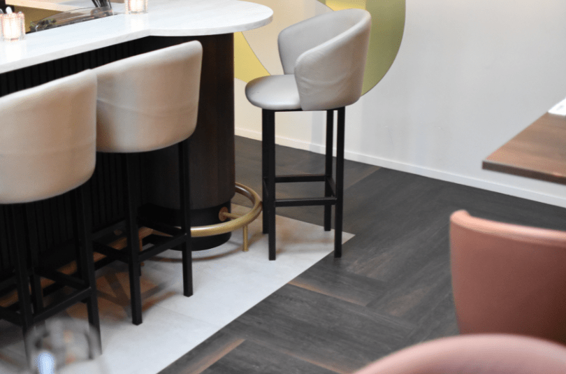 De uitdaging waarvoor Lippe Project in eerste instantie werd ingeschakeld was om de benedenverdieping van het restaurant een upgrade te geven. Het tapijt moest worden vervangen voor een harde vloer met een moderne, warme uitstraling. Met als prioriteit natuurlijk praktische eigenschappen zoals demping voor de akoestiek en duurzaam materiaal voor intensief gebruik.